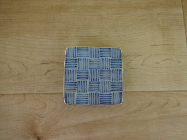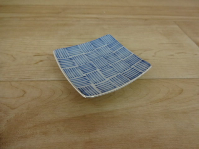 渕銀彩染付十草市松 6cm角小皿