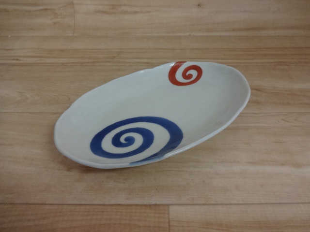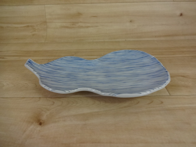 白磁染付ぶどう絵雲母金彩 中丸長角皿
