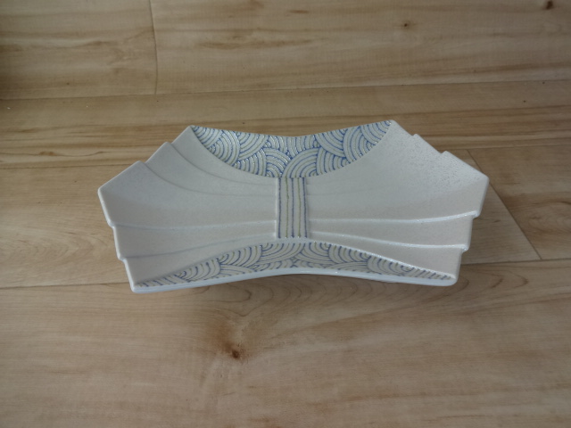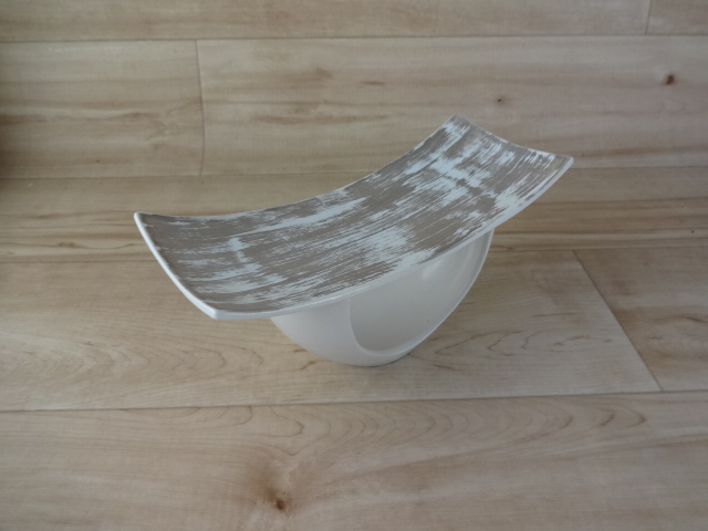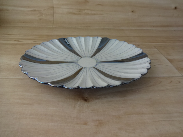 灯篭型前菜鉢 薄白釉プラチナ刷毛目
