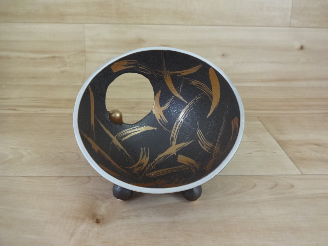 黒南蛮赤巻雲母金タタキ 丸抜丸小向付
