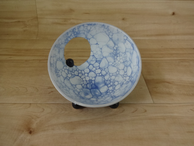 外黒釉ルリ月面 丸抜丸小向付
